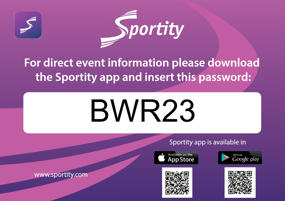 Die Sportity App kann von Google Play oder AppStore heruntergeladen werden und mit dem Passwort "BWR23" für die OBM Bucklige Welt Rallye 2023 verwendet werden.